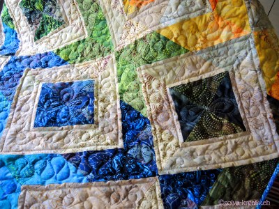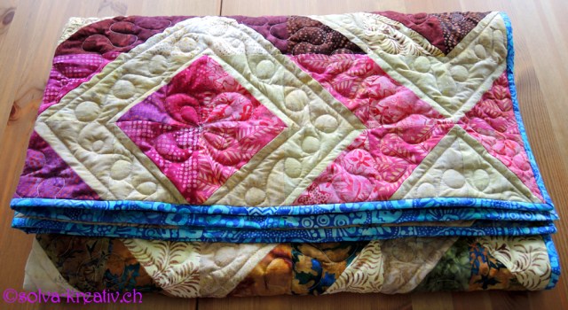 Vor etwa genau einem Jahr ist er fertig geworden. Mein erster richtiger Quilt aus Batik.