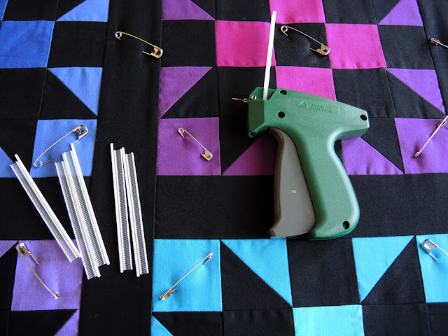 Da die Sicherheitsnadeln oft im Weg stehen und ich mich gerne beim Quilten konzentrieren will, benutzte ich für die Fixierung den Micro Stitch.