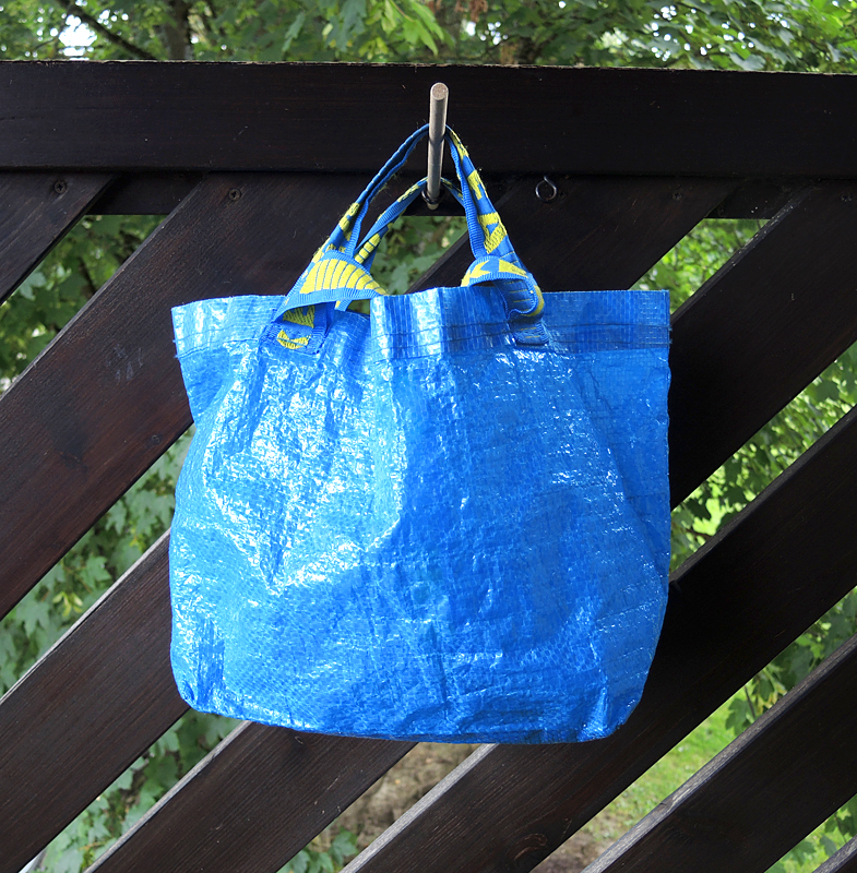 Schon letztes Jahr wollte ich diesen blauen „Sack“ von Ikea ersetzen, denn er hat einfach eine ideale Grösse um das Mittagessen mitzunehmen und so kaufte ich mir letztes Jahr extra Stoff für das Projekt.