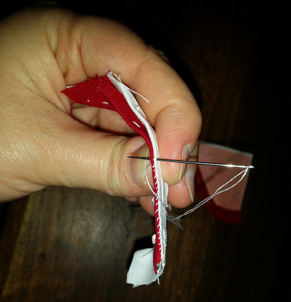 ein paar Falten 🙂 Und zum Schluss das Binding von Hand angenäht.