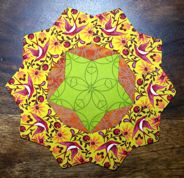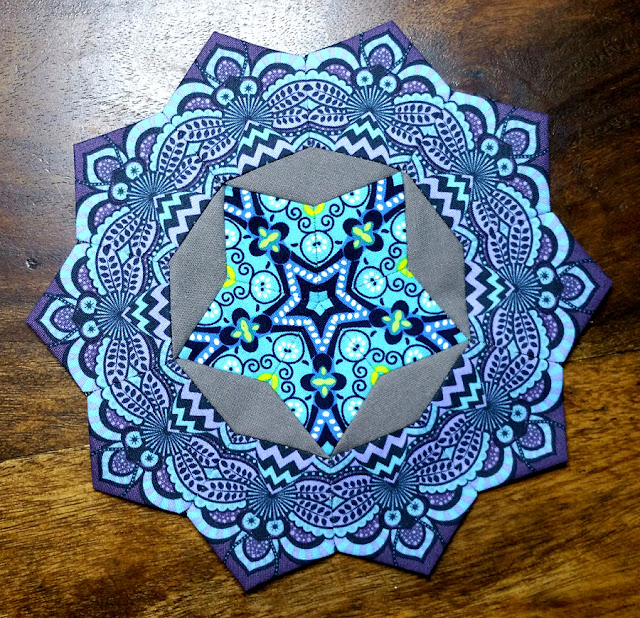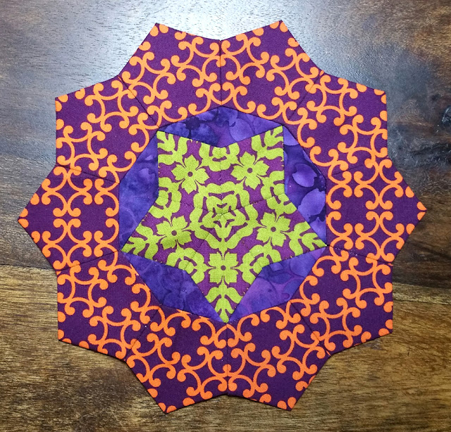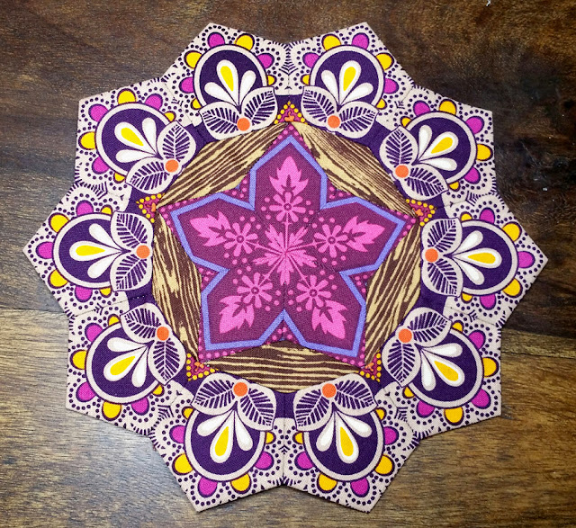 Ein wenig bin ich weitergekommen damit, aber nur ein wenig. Ein paar innere Rosetten sind fertig. Am längsten dauert es immer mit der Stoffauswahl. Da vergeht die die Zeit wie im Fluge und man probiert jegliche Farbvariationen aus. Muster, die passen sollten und und und. Aber ich habe ja keinen Zeitdruck und so wird er gaaaanz langsam wachsen 🙂
