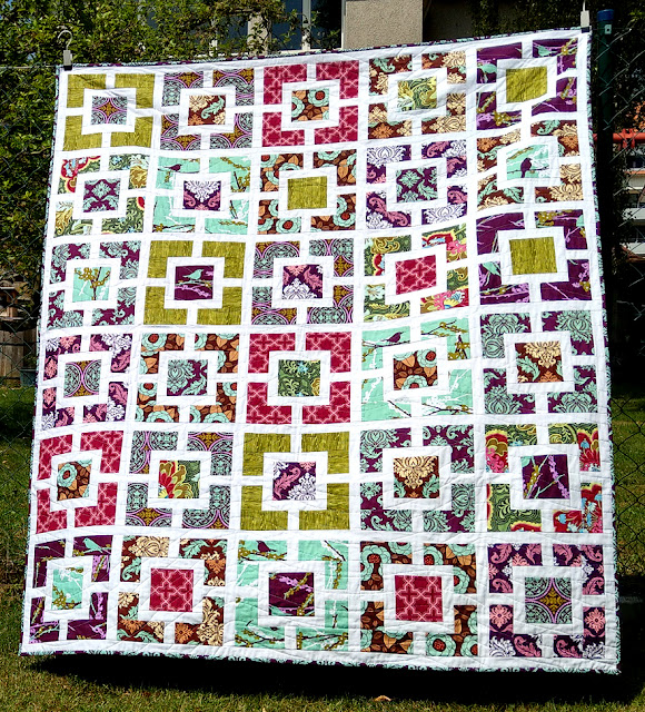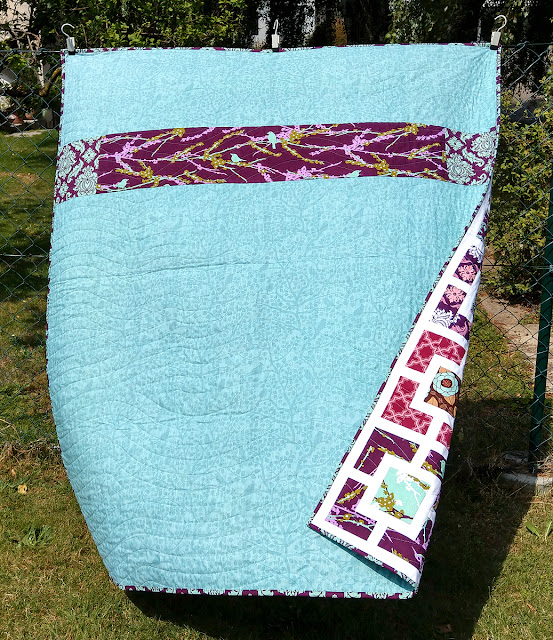 Er ist 171cm x 143 cm gross und als Vlies/Batting wurde Quilters Dream Cotton Request verwendet.