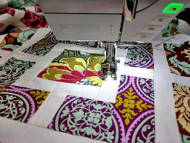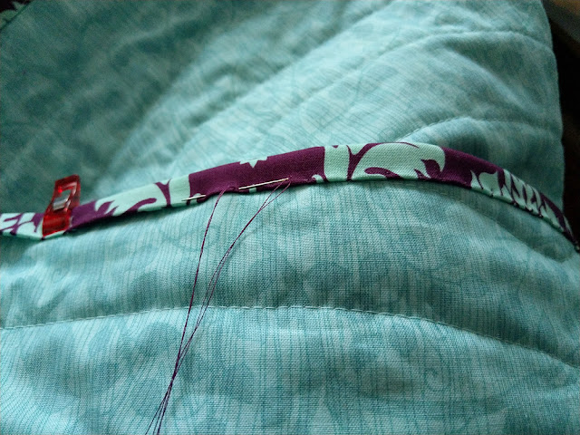 Gequiltet wurde in Wellenlinien mit dem Walking Foot oder auch Obertransportfuss genannt.