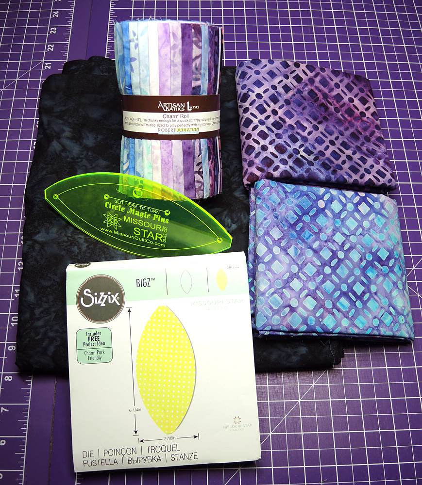 Ein „Artisan Batiks Splendid“ Charm Roll, sowie den Hintergrundstoff